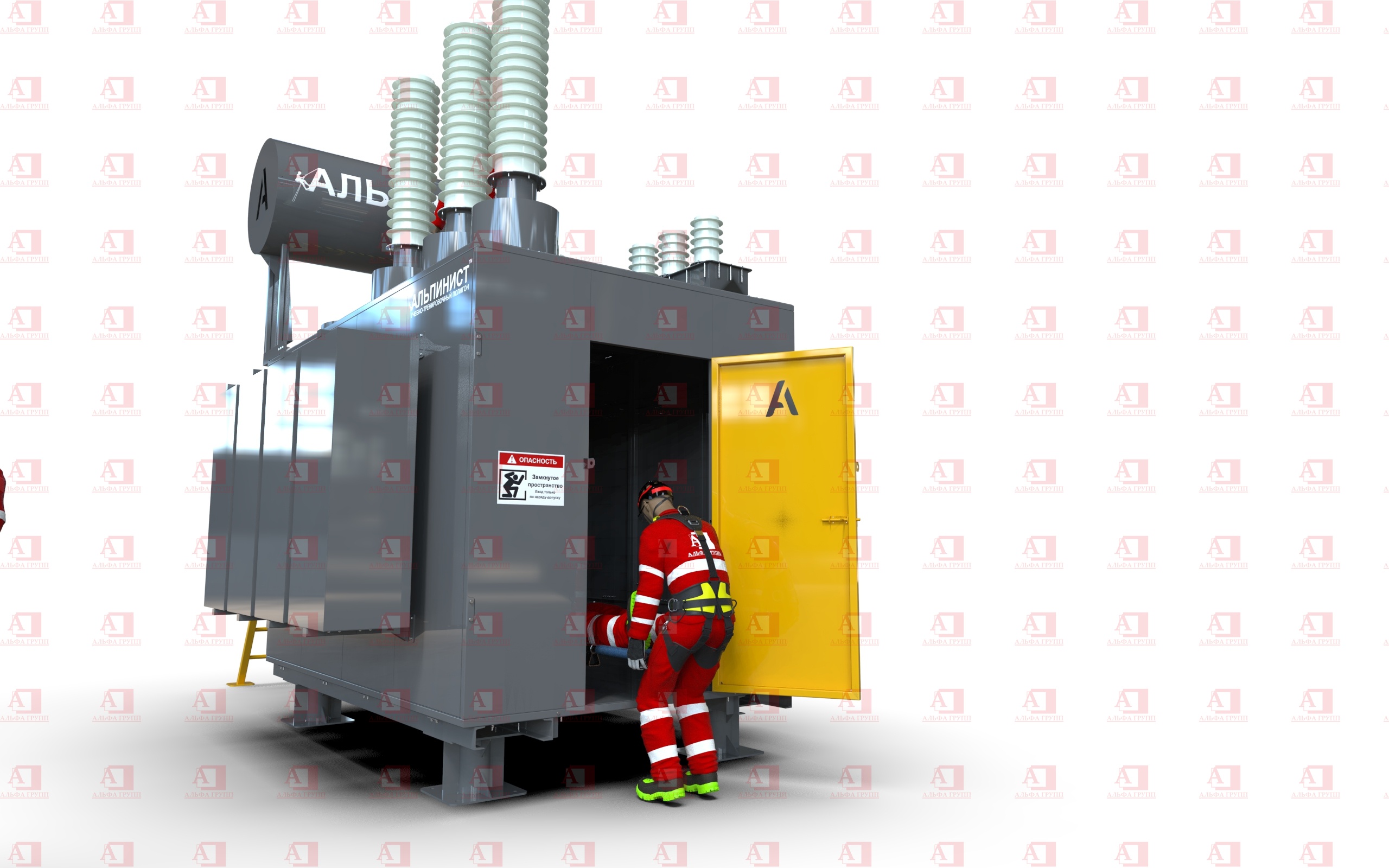 Учебно-тренировочный полигон ПА-МТ01 (Модуль Трансформатор) от АЛЬФА ГРУПП для практических занятий на высоте и в замкнутом пространстве с применением средств индивидуальной защиты и стационарных анкерных систем.
